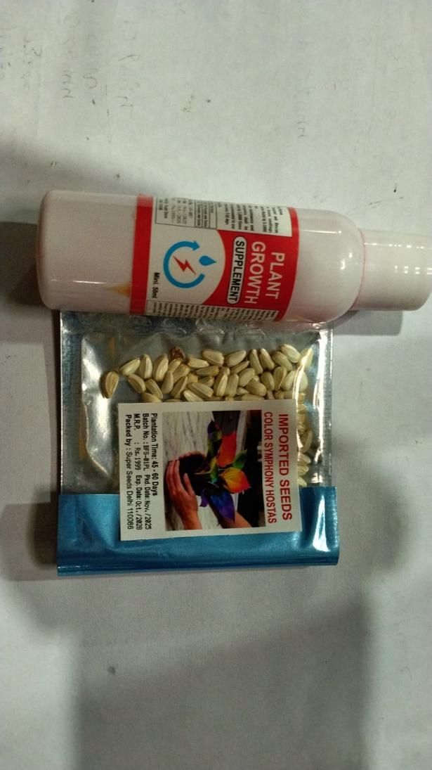 Product Name: Color Symphony Hostas with Plant Growth Serum (Pack of 40) Package Contains: It has 40 Seeds with Plant Growth Supplement Type: Flower Seeds Combo: Pack of 40 Weight: 156 gm